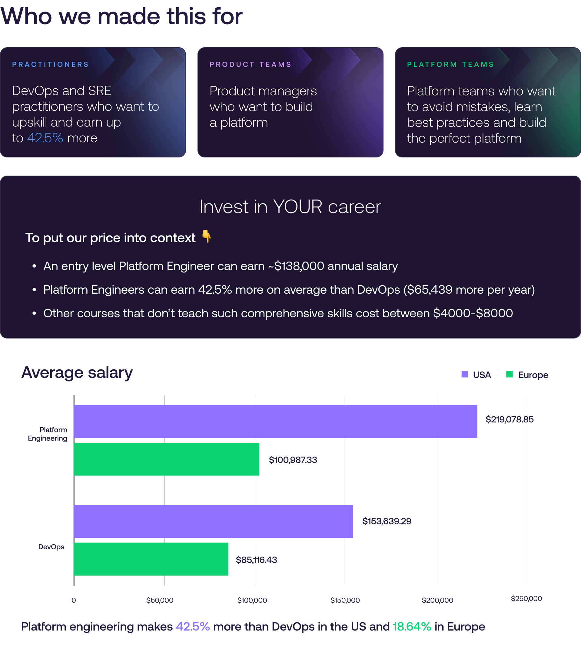 Master all the key concepts of platform engineering. Build your first Internal Developer Platform hands on. Get access to blueprints and templates to follow best practice.